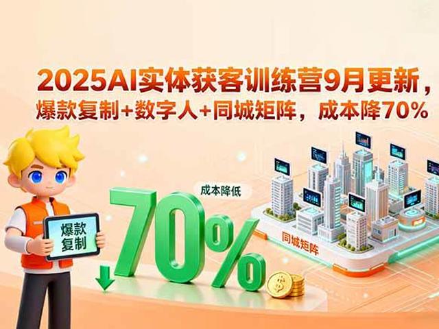 2025AI实体获客训练营9月更新,爆款复制+数字人+同城矩阵,成本降70%