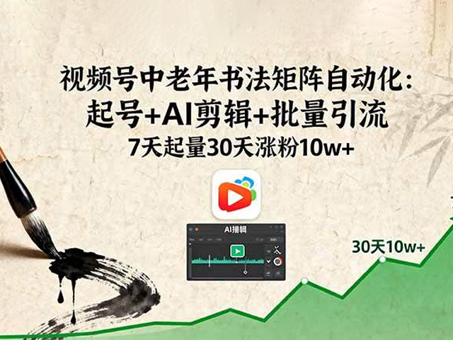 蝴蝶号中老年书法矩阵自动化:起号+AI剪辑+批量引流 7天起量30天涨粉10w+