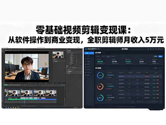 零基础视频剪辑变现课:从软件操作到商业变现,全职剪辑师月收入2万元