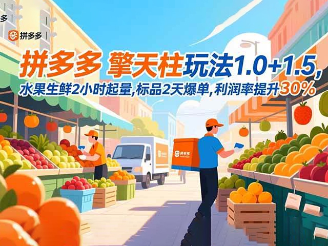 拼多多 擎天柱玩法1.0+1.5,水果生鲜2小时起量,标品2天爆单,利润率提升30%